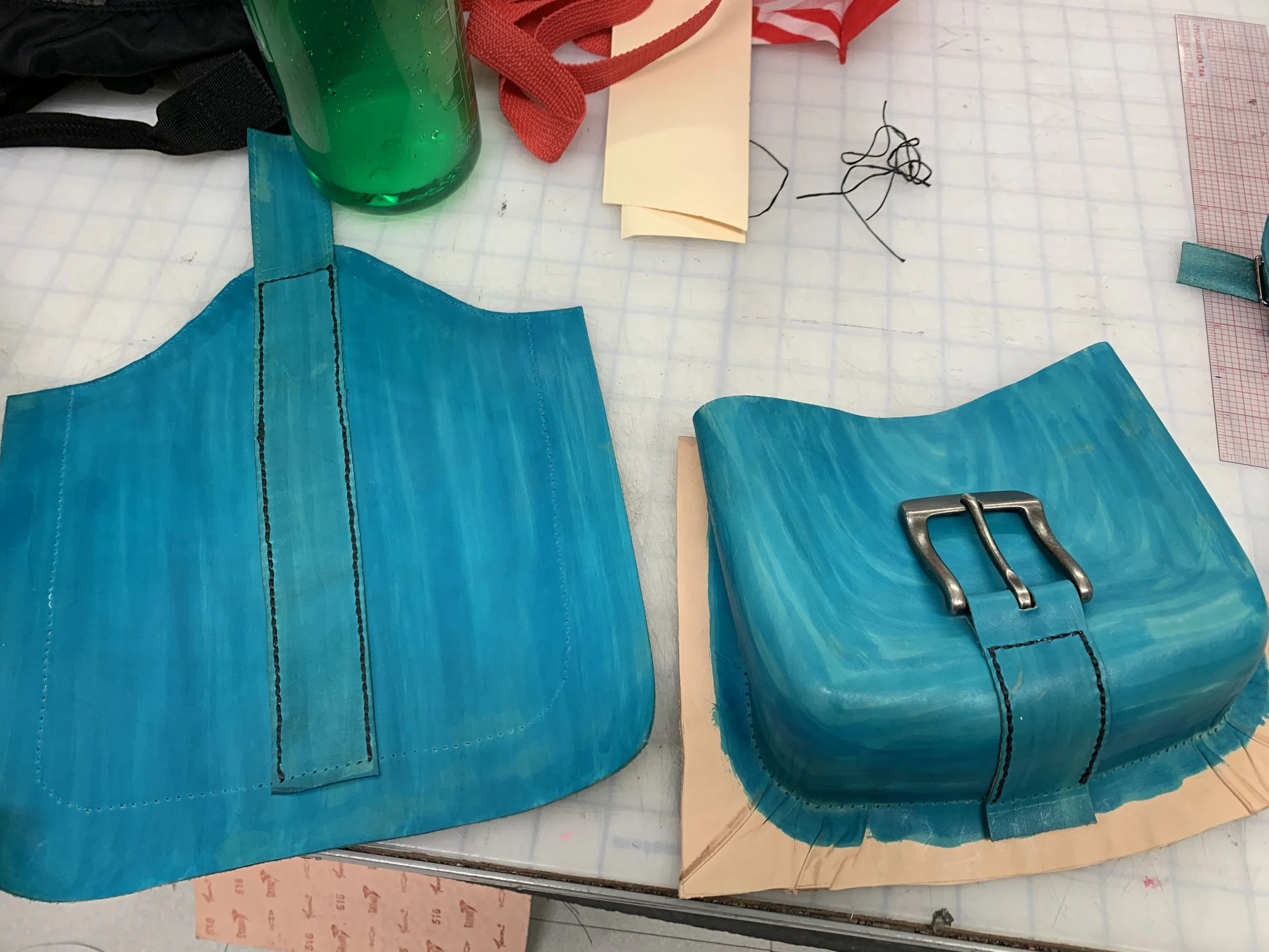 This hand stitched handbag and wallet project is inspired by canyon rivers. Materials include turquoise dyed Vegetan leather, black wax thread, and gunmetal hardware.
